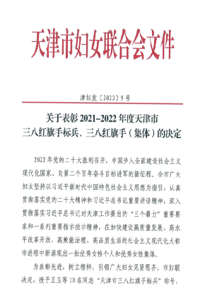 为表彰先进、树立榜样,进一步引领和激励广大妇女坚定不移听党话、跟党奋进新征程,积极投身全市“十项行动”工作,为加快建设社会主义现代化大都市,全面推进中华民族伟大复兴贡献天津女性的智慧和力量。日前,天津妇联表彰了一批天津市三八红旗手标兵、天津市三八红旗手和天津市三八红旗集体。