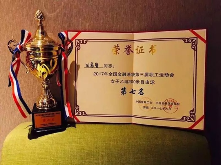 本届运动会包含趣味运动、太极拳、网球、游泳、田径等10个竞技项目,来自全国金融系统的68个代表队参加了比赛。经过激烈角逐,田易曾获得女子乙组200米自由泳第七名,并作为主力队员获得女子4×100米混合泳接力团体第五名的佳绩!